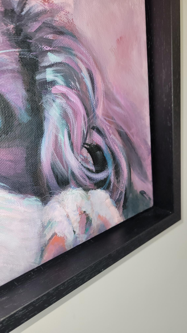 Coco ' Original by Joyce Buzeman 50x50cm framed in black wooden frame
